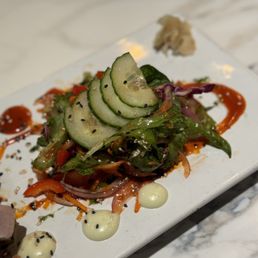 I ordered take out from here online and accidentally put the wrong time. I wanted to pick it up after work at 6:15, but it autofilled for 4:45! The restaurant opens at 4, so I waited until then to call, unfortunately no one picked up. Though luckily I found some contact info on the website and could reach out. I had low hopes to it would be seen, and it would've been no fault of the restaurant, completely on me. But it was seen and responded to really promptly! Manager was super understanding! The food itself was pretty good, I've been here a couple times, but I've never gotten takeout before now. The sushi is a little too saucy for me, I think being in the takeout container more gets on the pieces than if it was drizzled over a plate if that makes sense? Also the ambiance of the restaurant is really cool, so takeout takes that aspect away. So, I don't think I would order takeout again, but I will be back to eat here and bring friends. It's a cool spot to take people, especially people from out of town. It is a little on the pricier side in terms of sushi, but for being downtown and as nice as it is, it's really not that expensive in my opinion.